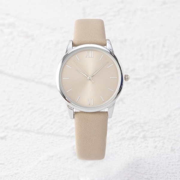 シンプルながらもベルトとダイヤルが同一色で少し高見えする時計です。