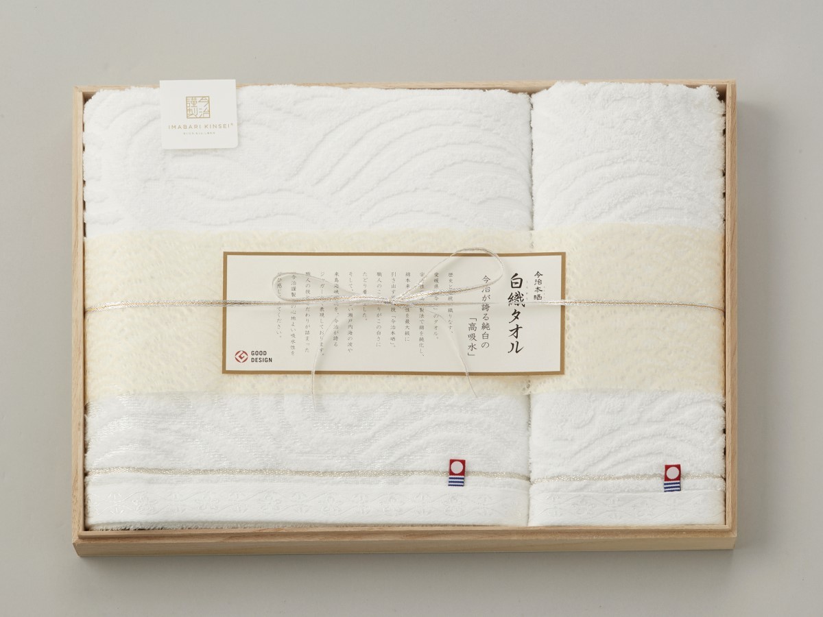 今治謹製 白織タオル 木箱入り ウォッシュタオル・バスタオル各1枚入り SR23035