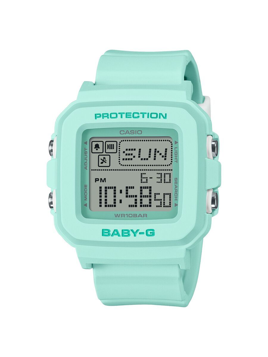 アクティブな女性のためのカジュアルウオッチBABY-Gから、スクエアフェイスのデジタルウオッチです。