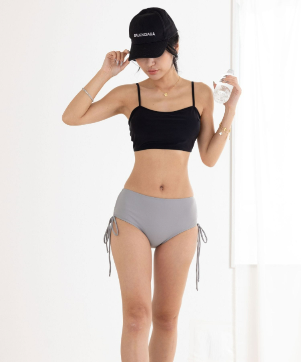 サイドギャザーを絞るとショーツの丈が調節可能