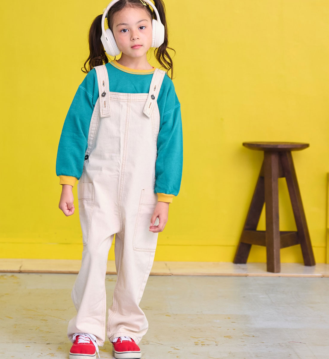 大きなポケットがポイントのオーバーオール。