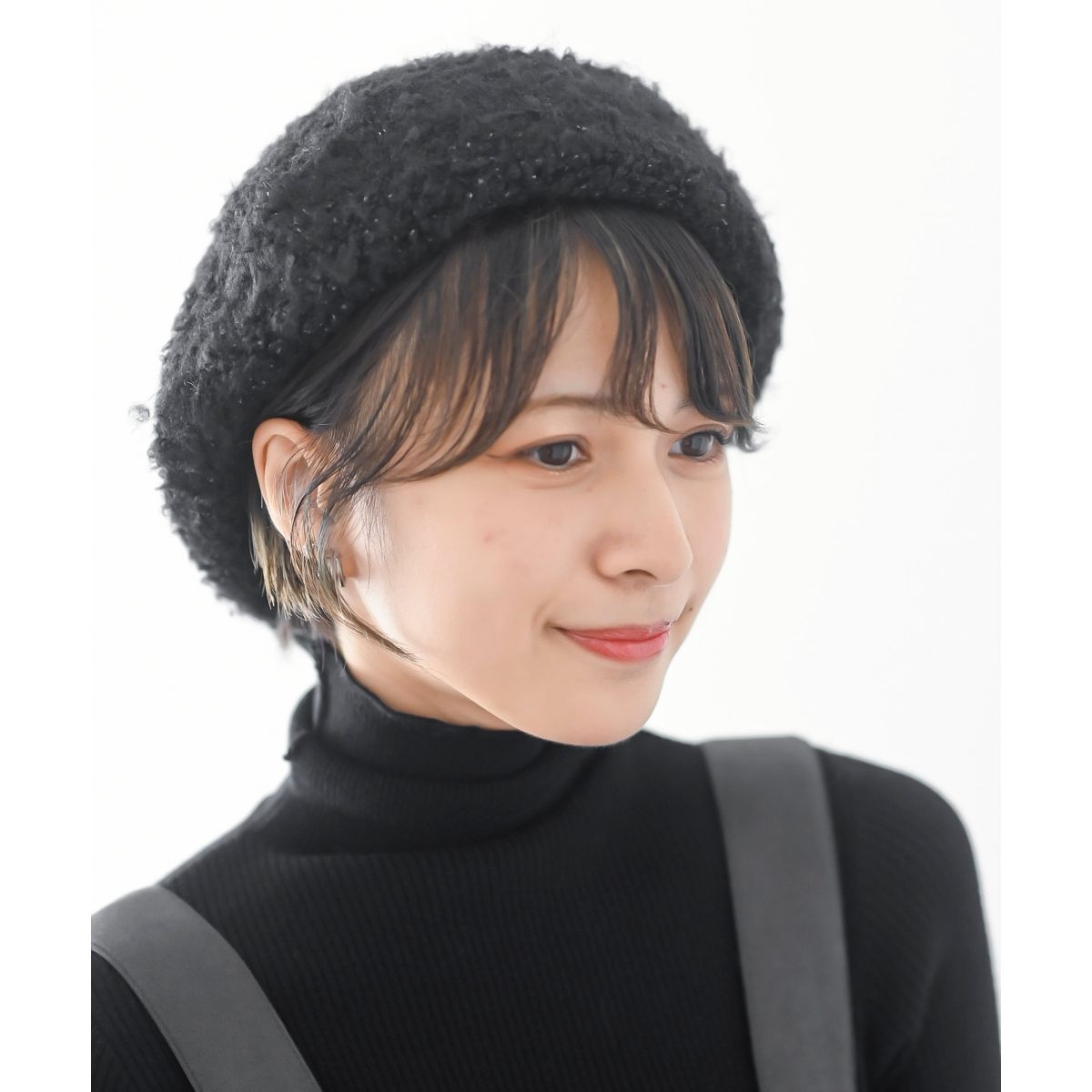 リングブークレーのもこもことした素材感が暖かな雰囲気を演出してくれるベレー帽。