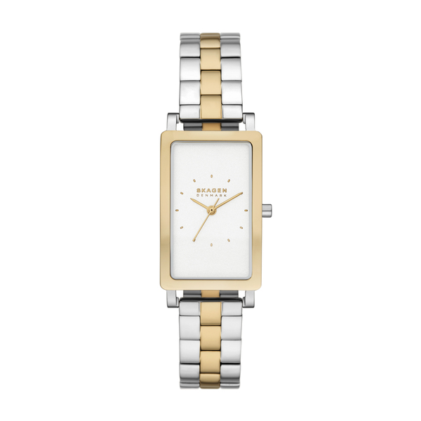 43mm径のケースに三針ムーブメントを搭載したHAGEN LILLE。サンドブラスト仕上げのホワイトのダイヤルに、ツートーンのステンレススチールブレスレットを組み合わせました。ウォッチストラップは付け替えできません。