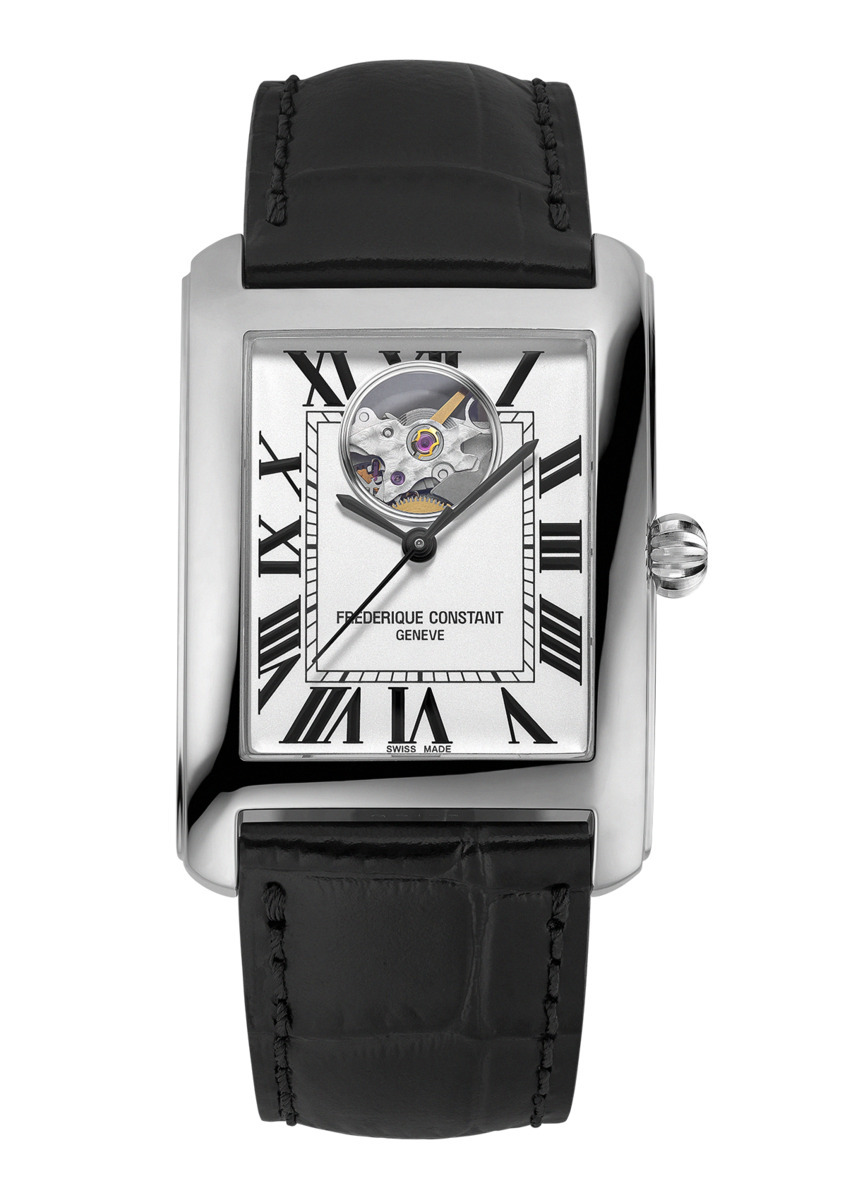 文字盤の小窓から機械式時計のテンプの動きを見せる“ハートビート”搭載のクラシックな角型“カレ”コレクション。