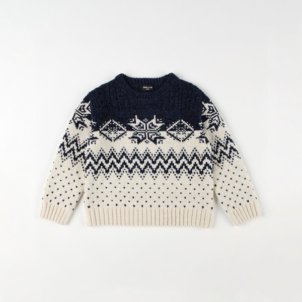 雪柄プルオーバーニット