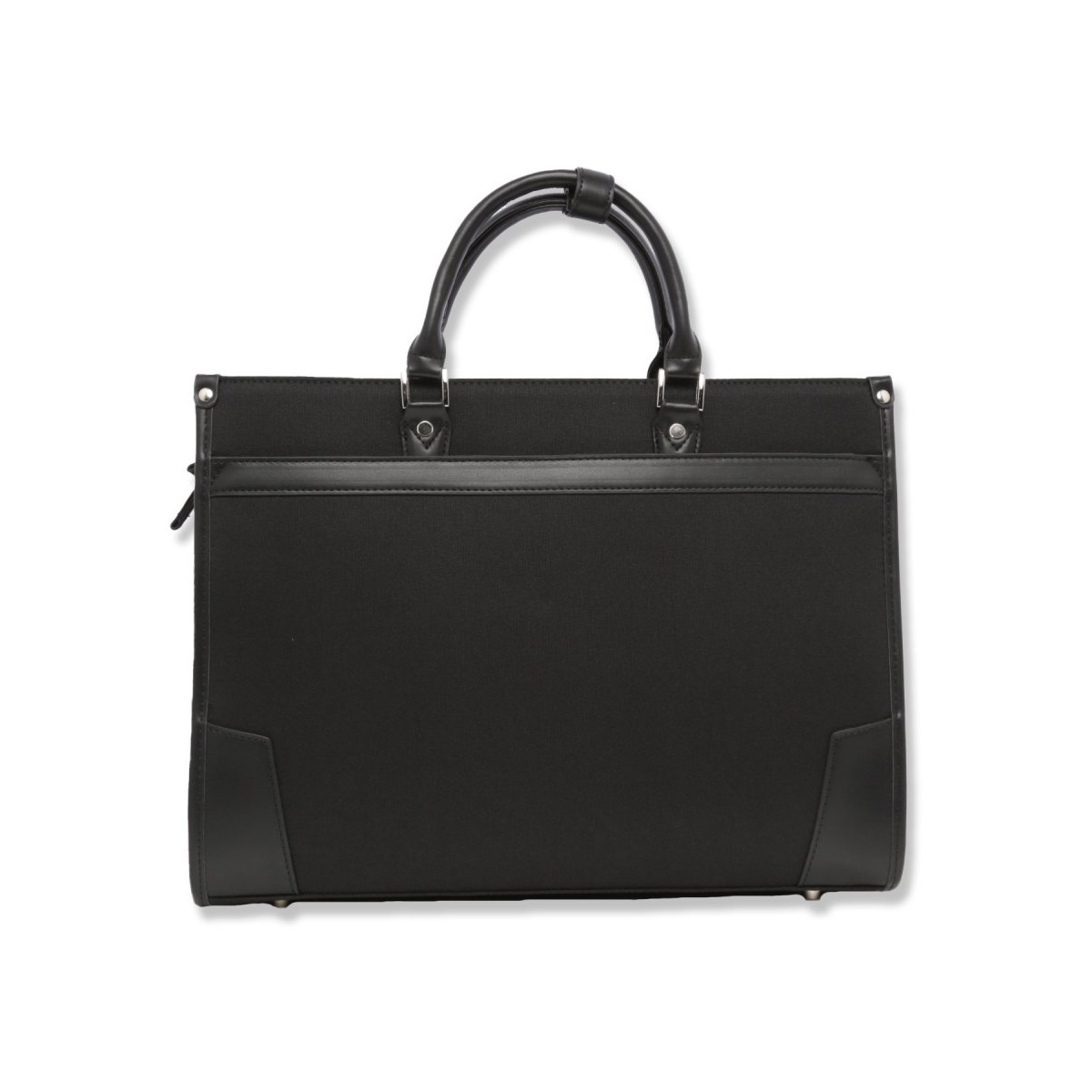 スタンダードなスクエア型シルエットです。A4ファイルが余裕で入るサイズ感で、大切な書類や資料等も折らずに収納可能。底鋲付きで自立するので安定感が増し、型崩れを防ぎます。