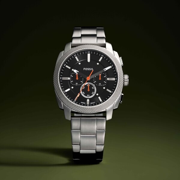 クラシックなアメリカの機械にインスパイアされたMACHINEクロノグラフ。印象的なローレット加工を施したトップリングが目を惹くデザインです。大胆な44mm径のケースに、質感のあるディテールを施した艶消し仕上げのブラックのダイヤルを組み合わせました。ミネラルクリスタルのフェイスが保護を提供する、男性的な魅力が際立つモデルです。精確なクォーツクロノグラフムーブメントを搭載したこのラギッドなタイムピースは、丈夫なステンレススチールブレスレットを備え、耐久性にも優れています。インダストリアル風のデザインが冴える存在感のあるウォッチです。