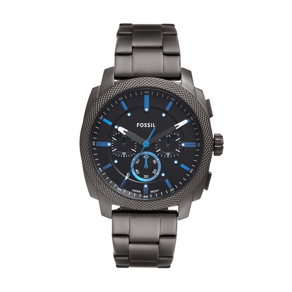 クラシックなアメリカの機械にインスパイアされたMACHINEクロノグラフ。印象的なローレット加工を施したトップリングが目を惹くデザインです。大胆な44mm径のケースに、質感のあるディテールを施した艶消し仕上げのブラックのダイヤルを組み合わせました。ミネラルクリスタルのフェイスが保護を提供する、男性的な魅力が際立つモデルです。精確なクォーツクロノグラフムーブメントを搭載したこのラギッドなタイムピースは、丈夫なガンメタルのステンレススチールブレスレットを備え、耐久性にも優れています。インダストリアル風のデザインが冴える存在感のあるウォッチです。