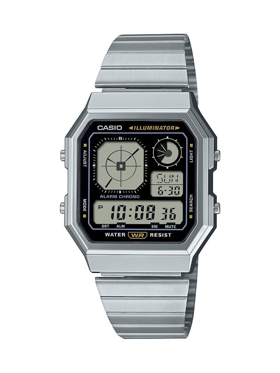 LCアナログを採用した、ガジェットライクなデジタルウオッチです。1980年代に人気を博したLCアナログデザインを現代風にアレンジ。レトロフューチャーなフェイスデザインに、メタリックカラーを組み合わせました。