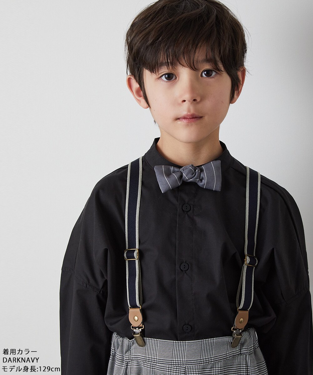 ナチュラル素材のバンドにアンティーク加工が施されたクリップを合わせたサスペンダー。