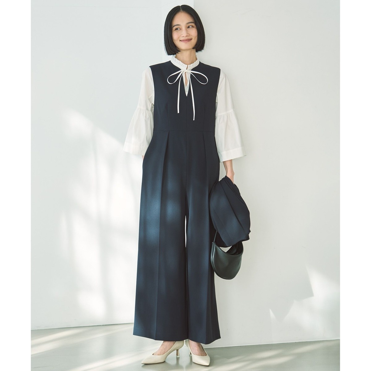 サッと1枚で着るだけでサマになるオールインワンは、インナー次第でシーズンを問わず活躍するアイテム。ブラウスやアクセサリーを加えることで、オケージョンアイテムとしても使える万能な1枚です。