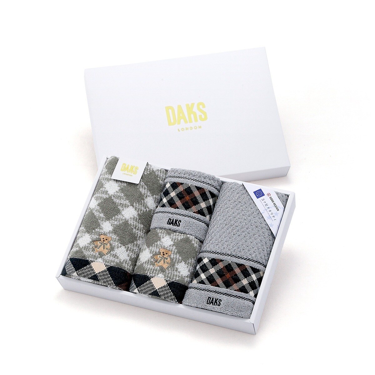 DAKS ブラックハウスチェックベア ウォッシュタオル・フェイスタオル各2枚入り
