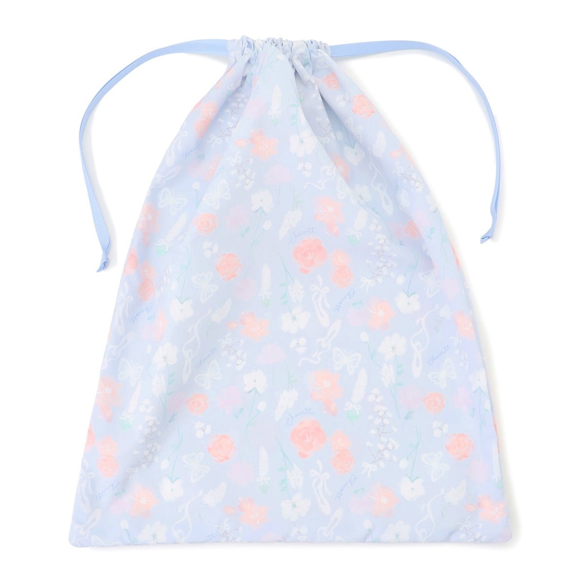 フラワー柄にポワントとバタフライが春らしいプリントの巾着Lサイズ