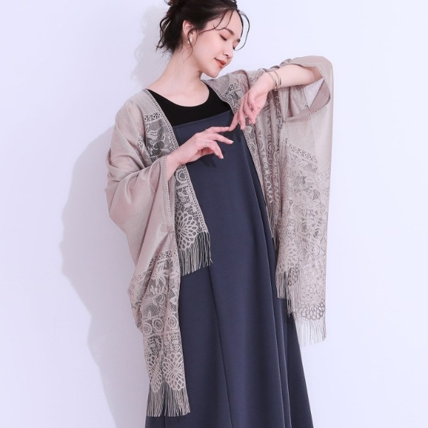 一枚着のワンピースコーデやシンプルなワントーンコーデなどにさっと羽織って、カーディガン感覚でも着用できる着回しの利く1枚です。