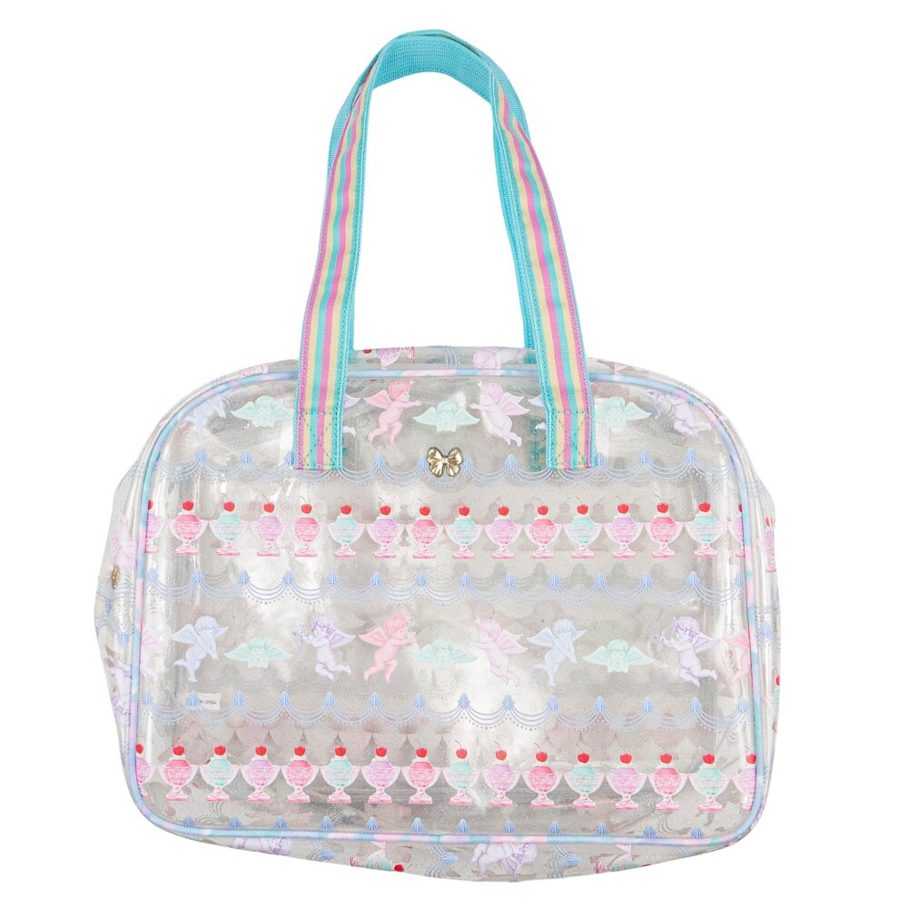 全面クリアのラメ入りPVC素材を使用したボストンバッグ。