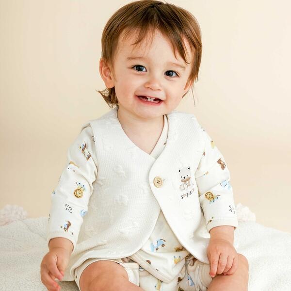 【お揃い】ぽこぽこチェリーアニマル柄ベストベビー(70~80cm)