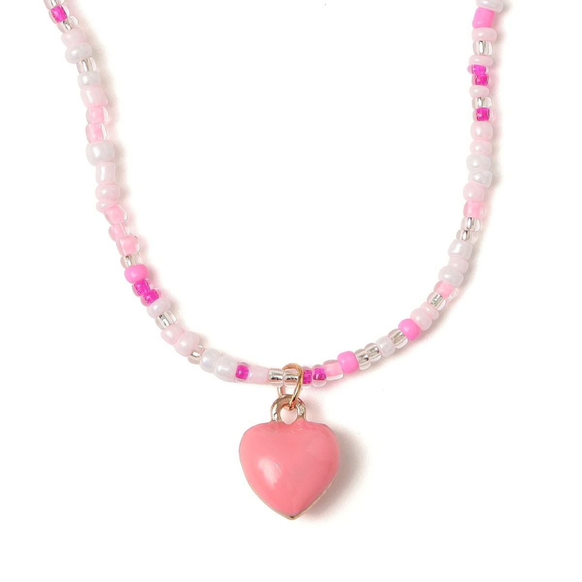 カラフルなビーズとハートのモチーフがキュートなネックレス。