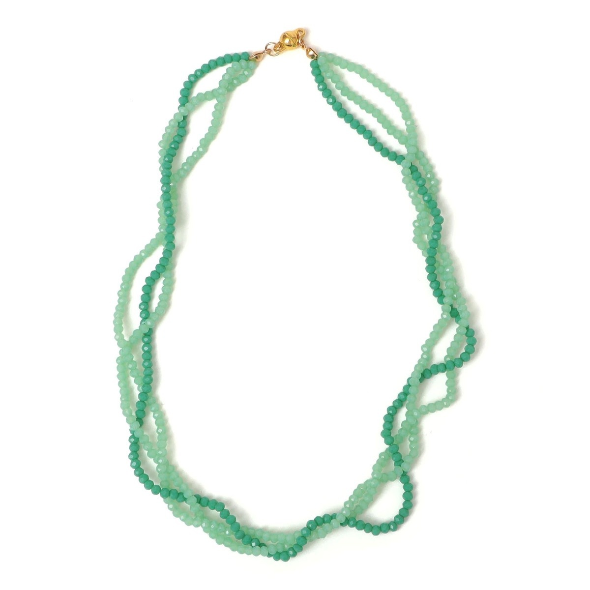 同色のビーズを3連に組み合わせた、ボリューム感のあるネックレス。