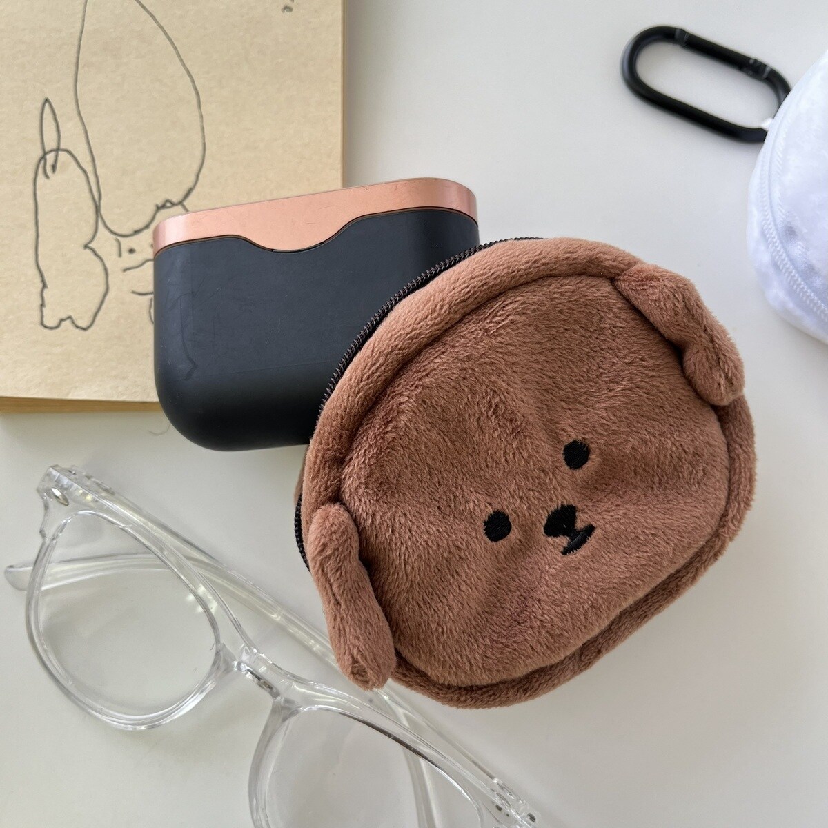 プードル ブラウン ポーチ カラビナ付き ミルアンドモイ 韓国 推し活