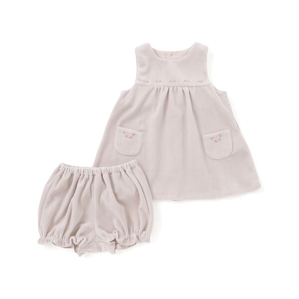 しっかりとした厚みのあるベロア素材のベビー用ワンピース+ブルマセット。
