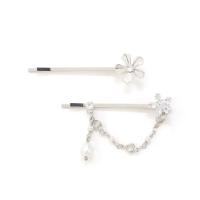 花リボン蝶々モチーフ付きシルバーヘアピン