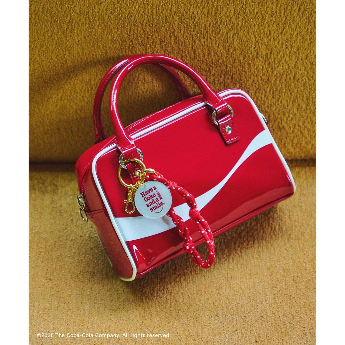 ・コカ・コーラの象徴のダイナミックリボンがポイントのトレンド感のあるミニサイズのボストン。