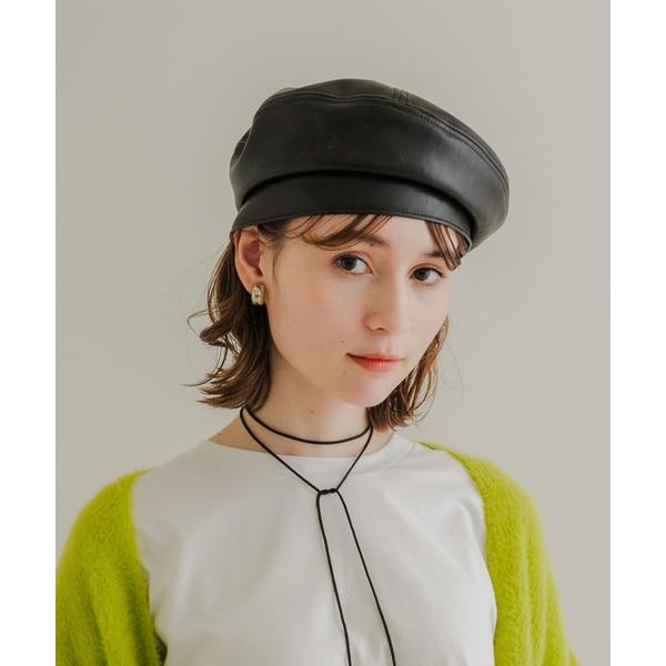 程よいツヤ感のある柔らかなフェイクレザーを使用したベレー帽。