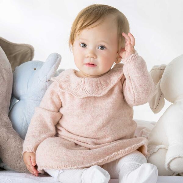 優しい淡いピンクカラーで、赤ちゃんらしい可愛らしさと上品さを兼ね備えています。