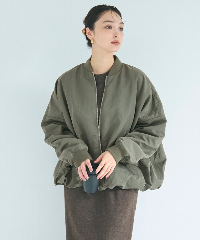丸みシルエットで上品に。女性らしさ引き立つバルーンブルゾン