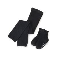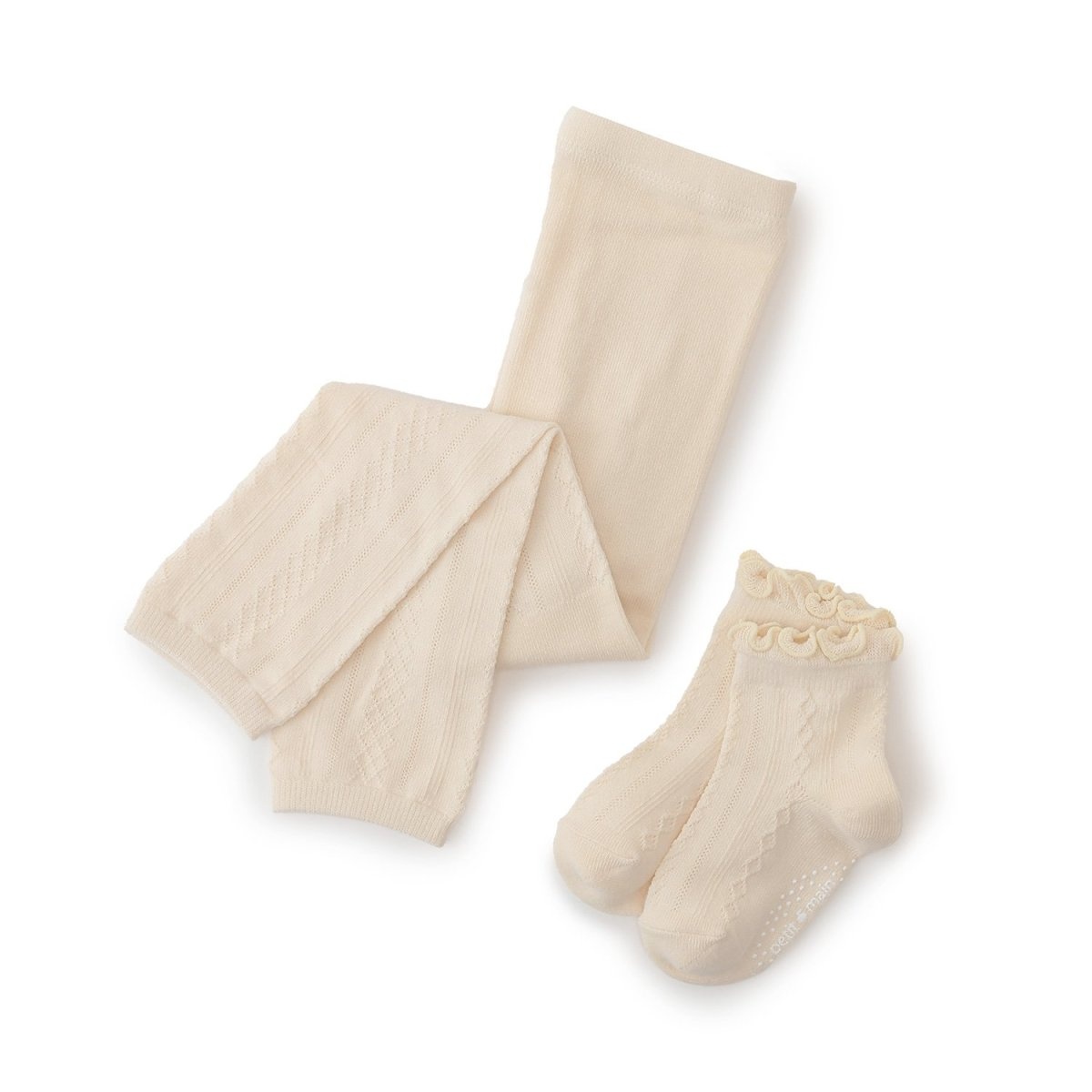 ニット風の編みデザインがかわいいレギンスとソックスのセットです。