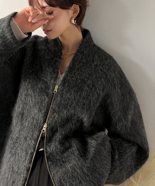柔らかな毛足が高級感と保温性を兼ね備え、上下から開くダブルジップが抜け感を演出。