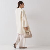 ・ややゆとりのあるシルエットで仕立てたノーカラーコート。