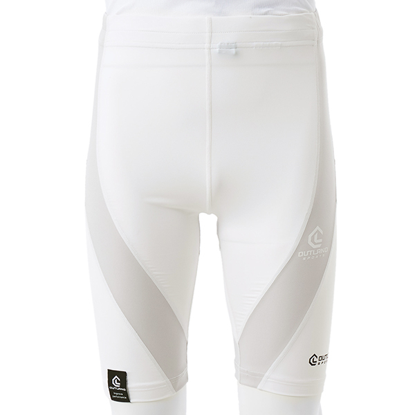 腰まわりとヒップをしっかりサポートする設計で、テーピング効果により正しい姿勢へ導くコンプレッションハーフスパッツです。