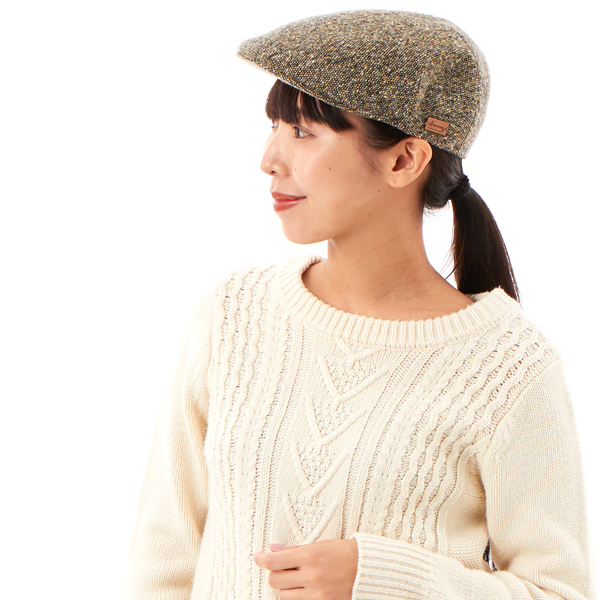 「ネップ(繊維の塊や節)」をあえて生地の表面に散りばめ、独特な表情と立体感、温かみを出したツイード生地、ネップツイードで作られたハンチング。