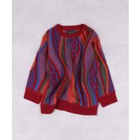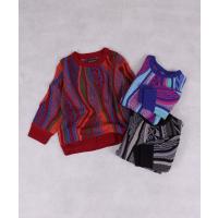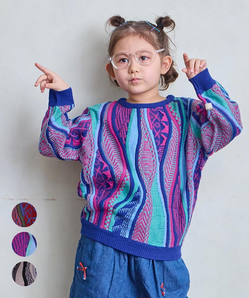 立体感のある編地とレトロな配色が目を引く3Dニット。