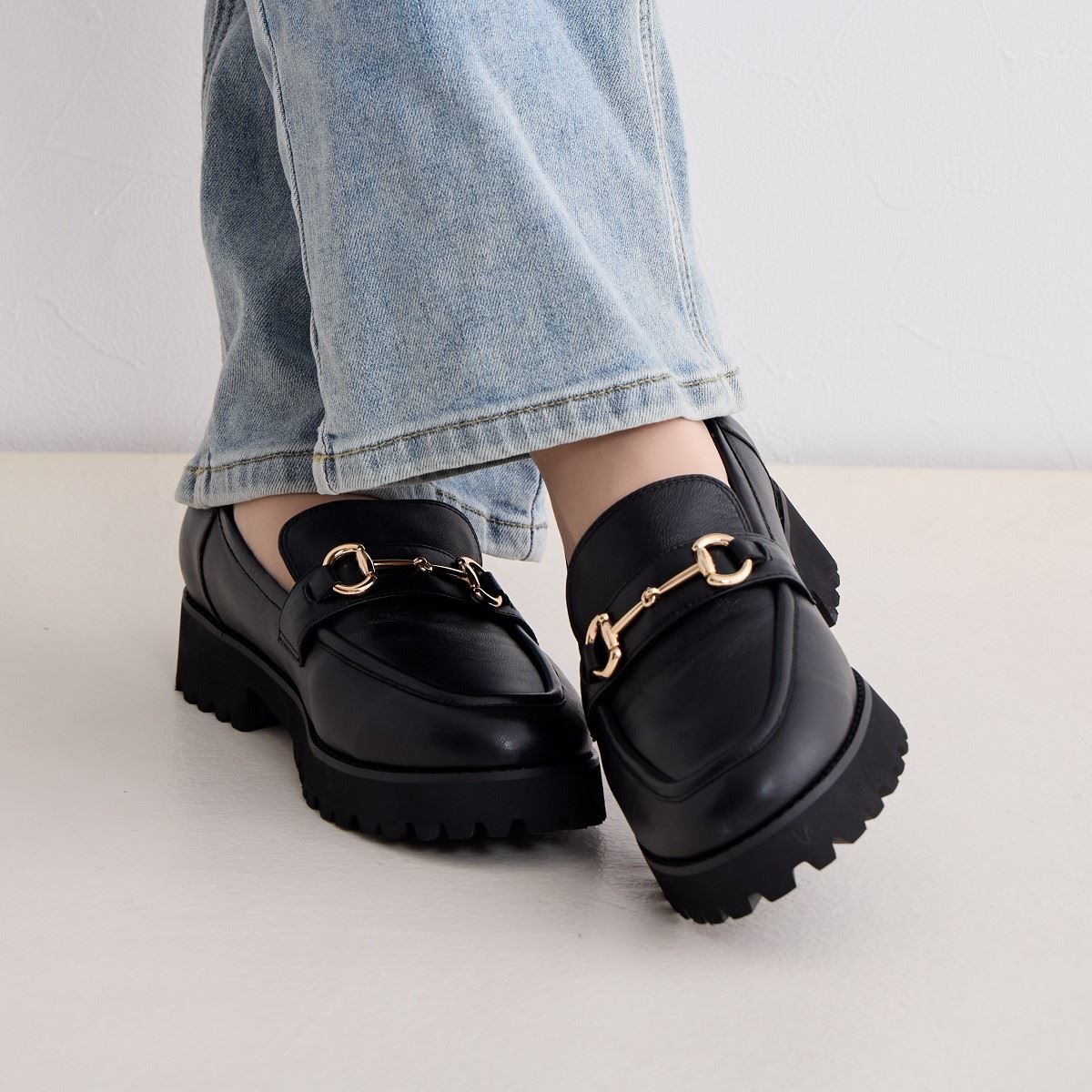 丸みがありながらもすっきりとしたシルエットにビットをのせて、カジュアルにもきれい目スタイルにも相性が良く、足元を引き締めてくれます。
