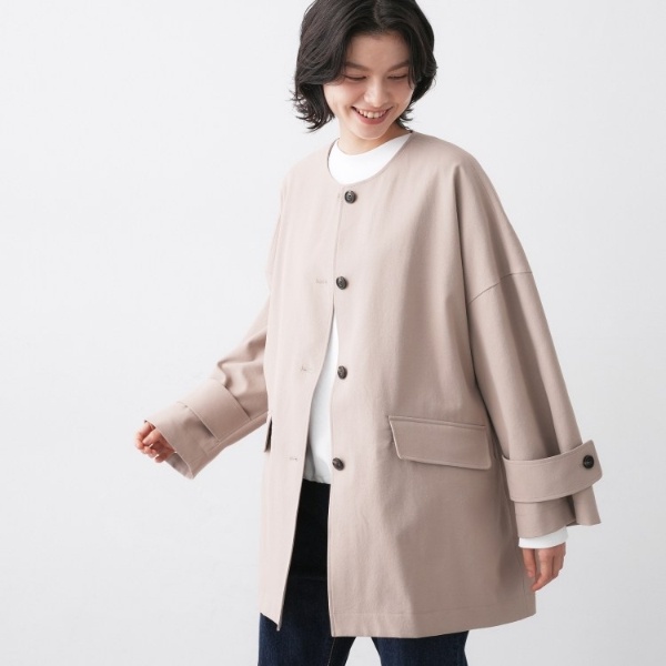 商品名:【花粉ガード撥水加工洗える】クルーネックスプリングコート
