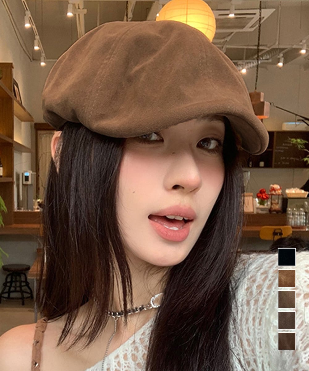 立体的なシルエットで顔まわりをやさしく覆い、こなれた印象に。