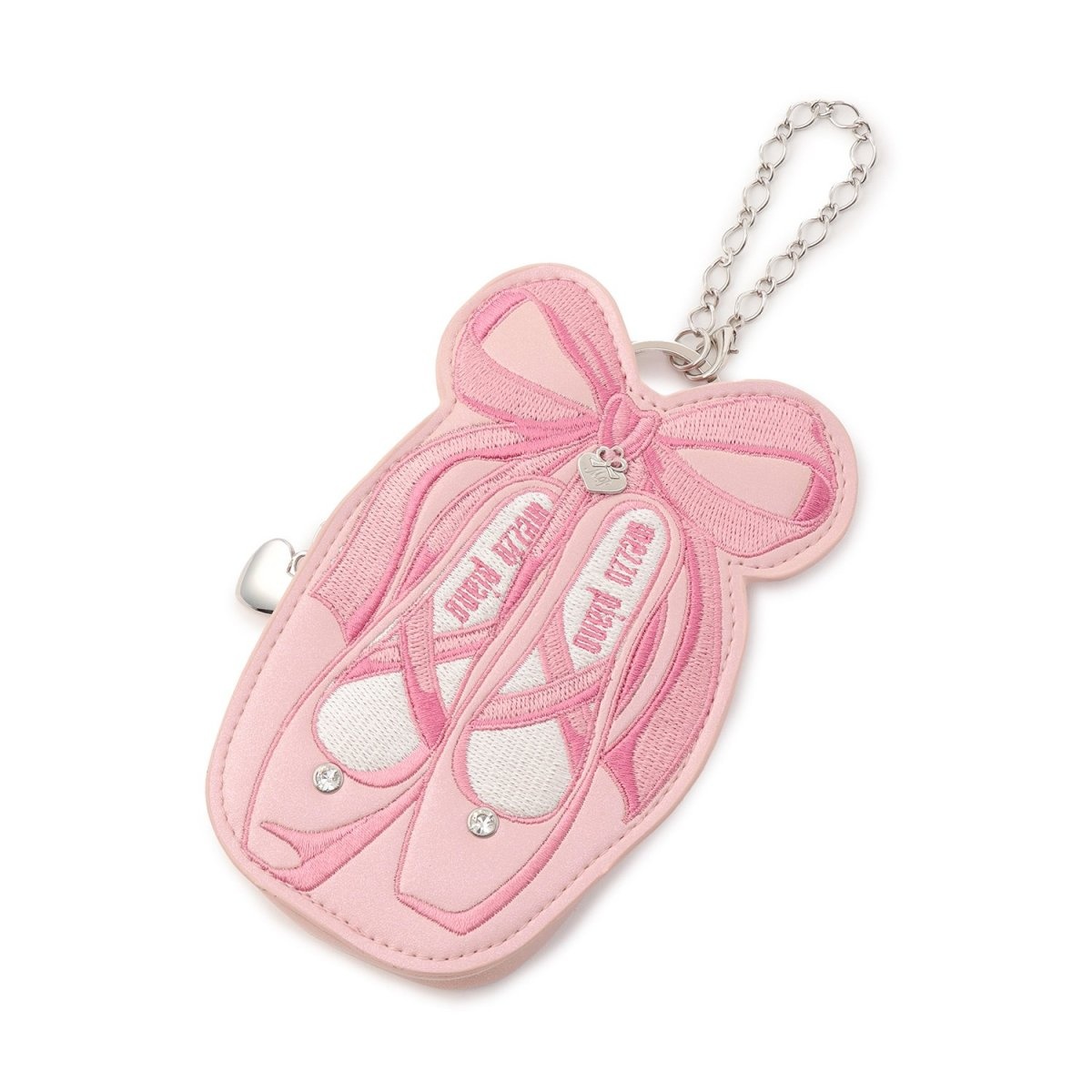 細々としたアイテムを入れるのに便利なミニポーチ型のバックチャームです。遊び心のある3種類のキュートなモチーフがデザインされています。メタルロゴやストーンパーツでさりげない輝きをプラス。お手持ちのバッグなどにつけやすく、外出時の相棒として活躍します。