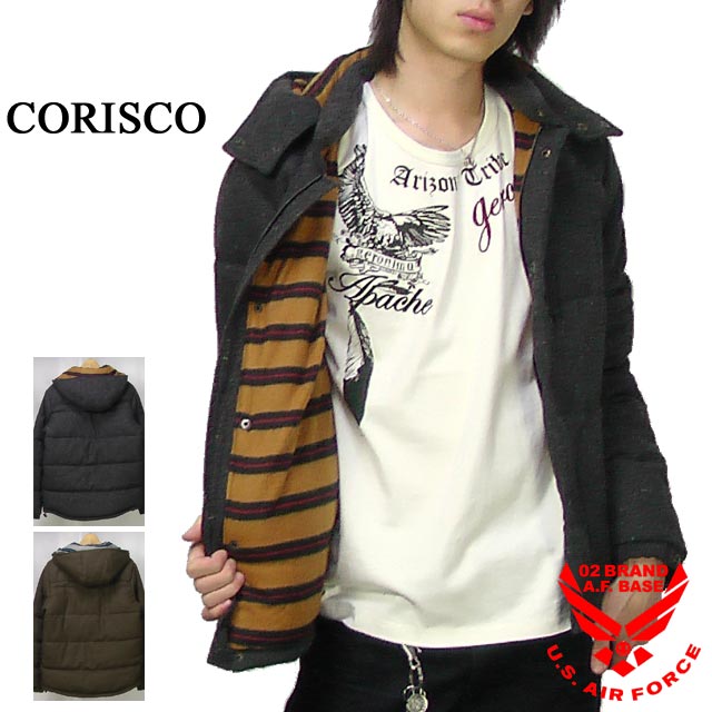アウトレット!!コリスコ CORISCO カラーネップツイード フード脱着フェイクダウンジャケット