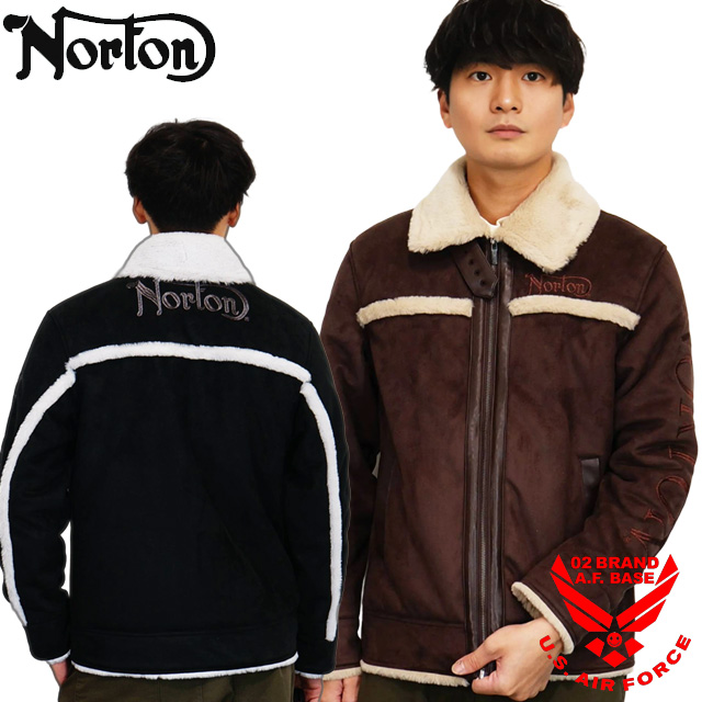ノートン ロゴ刺繍 フェイク ムートンジャケット フェイクスウェード生地 253n1701