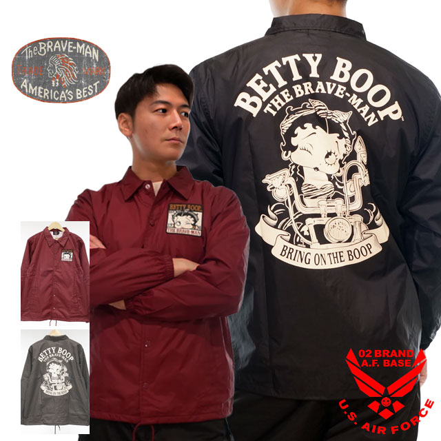 ブレイブマン ベティブープコラボ バイカーズベティープリント ナイロンコーチジャケット アウター ユニセックス 新作2025年モデル BRAVE MAN BETTY bbb-2523