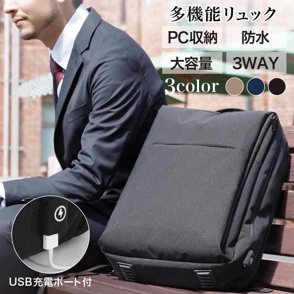 | 商品名 | ビジネスリュック メンズ 多機能 軽量 大容量 防水 通勤 シンプル 15.6インチPC収納 USB充電ポート YKKファスナー カバー付き |