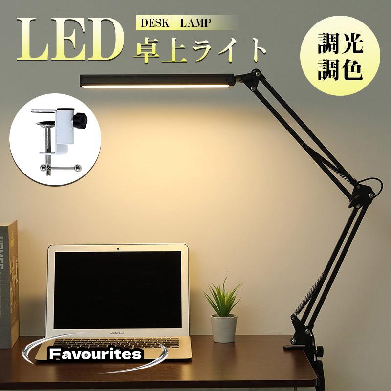 クランプ取り付けで、机に挟み込んで設置。ロングアームを採用し、デスクライト光源LED部も長く、広範囲に明るく照らすことが可能。900ルーメンで色温度も光源も無段階で調整可能。3関節のクランプLEDライト
