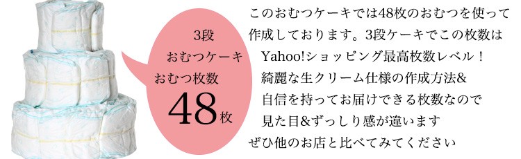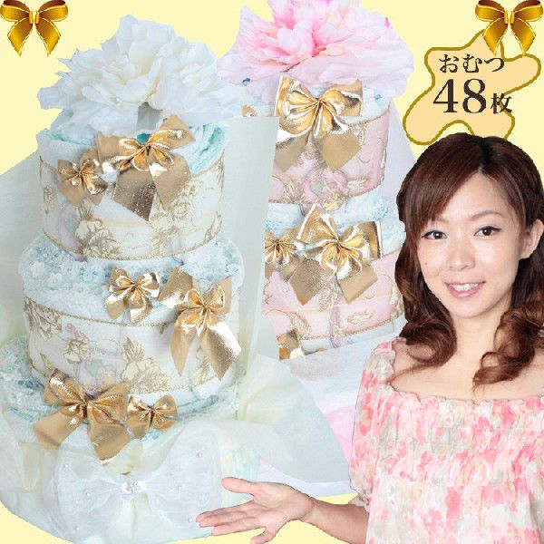 おむつケーキ おむつ枚数 48枚! 3段おむつケーキ Elegant シリーズ 送料無料