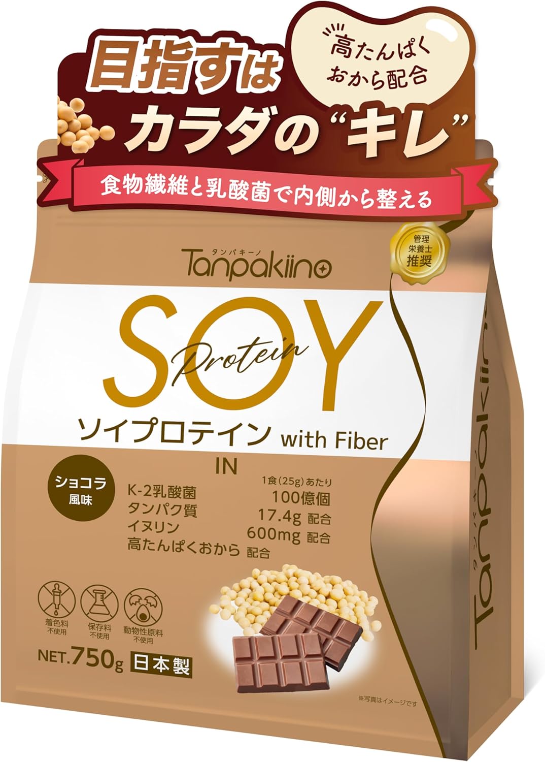 タンパキーノ ソイプロテイン(ショコラ) 送料別 750g 国内製造 管理栄養士推奨 グルテンフリー おから イヌリン 食物繊維 乳酸菌 高たんぱく チョコ