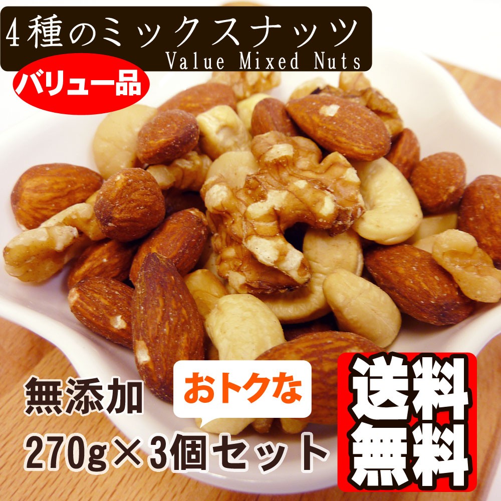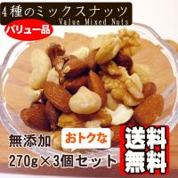 4種のバリューミックスナッツ 270g×3個セット(アーモンド くるみ カシューナッツ マカダミアナッツ)