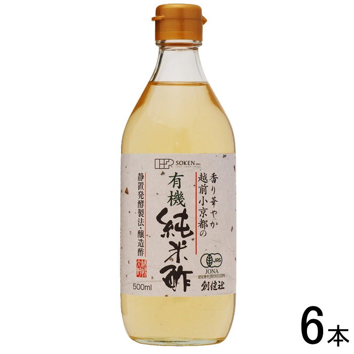 創健社 越前小京都の有機純米酢 瓶 500ml×3本入×2ケース:合計6本 /食品