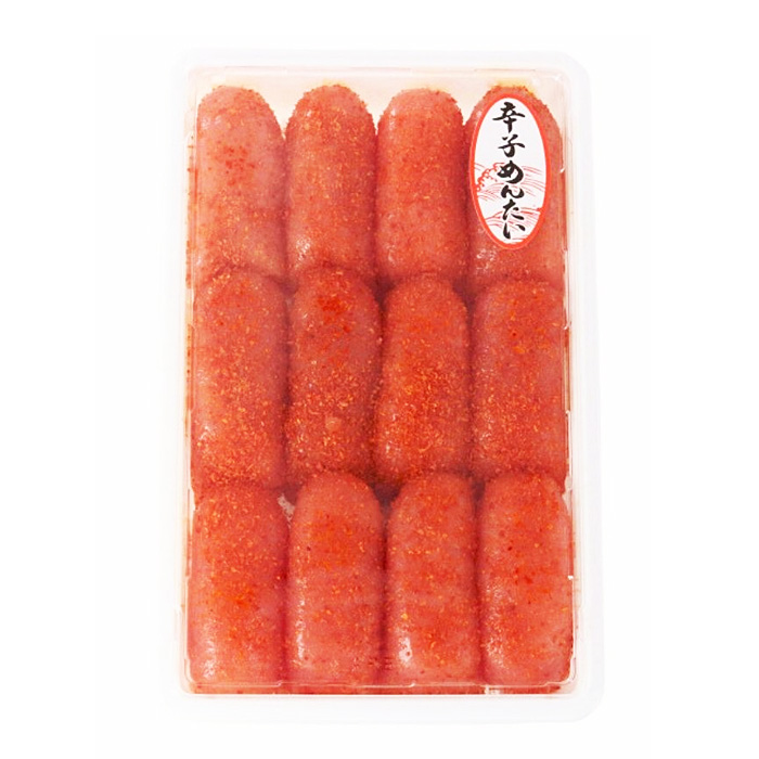スケソウダラの卵巣(ロシア産又は米国産)、食塩、糖類(ブドウ糖、砂糖、水飴)、焼酎、清酒、かつお節調味液、醤油、唐辛子、かつおエキス/調味料(アミノ酸等)、トレハロース、ソルビット、アルコール、酸化防止剤(ビタミンC)、pH調整剤、甘味料(ステビア)、香辛料抽出物、着色料(赤102、黄5、赤3)、発色剤(亜硝酸Na)、酵素、(一部に小麦・大豆を含む)