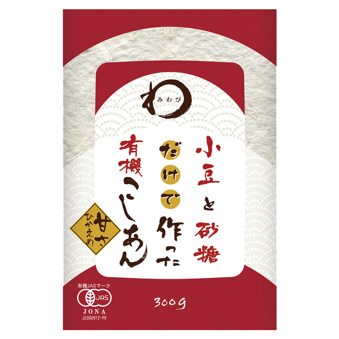 小豆と砂糖だけを原材料にすることで、小豆本来の風味を生かして仕上げたこしあんです。低糖度で小豆本来の上品な美味しさがしっかりと味わえます。農林水産省の有機JAS規格に適合した小豆、砂糖を使用しております。